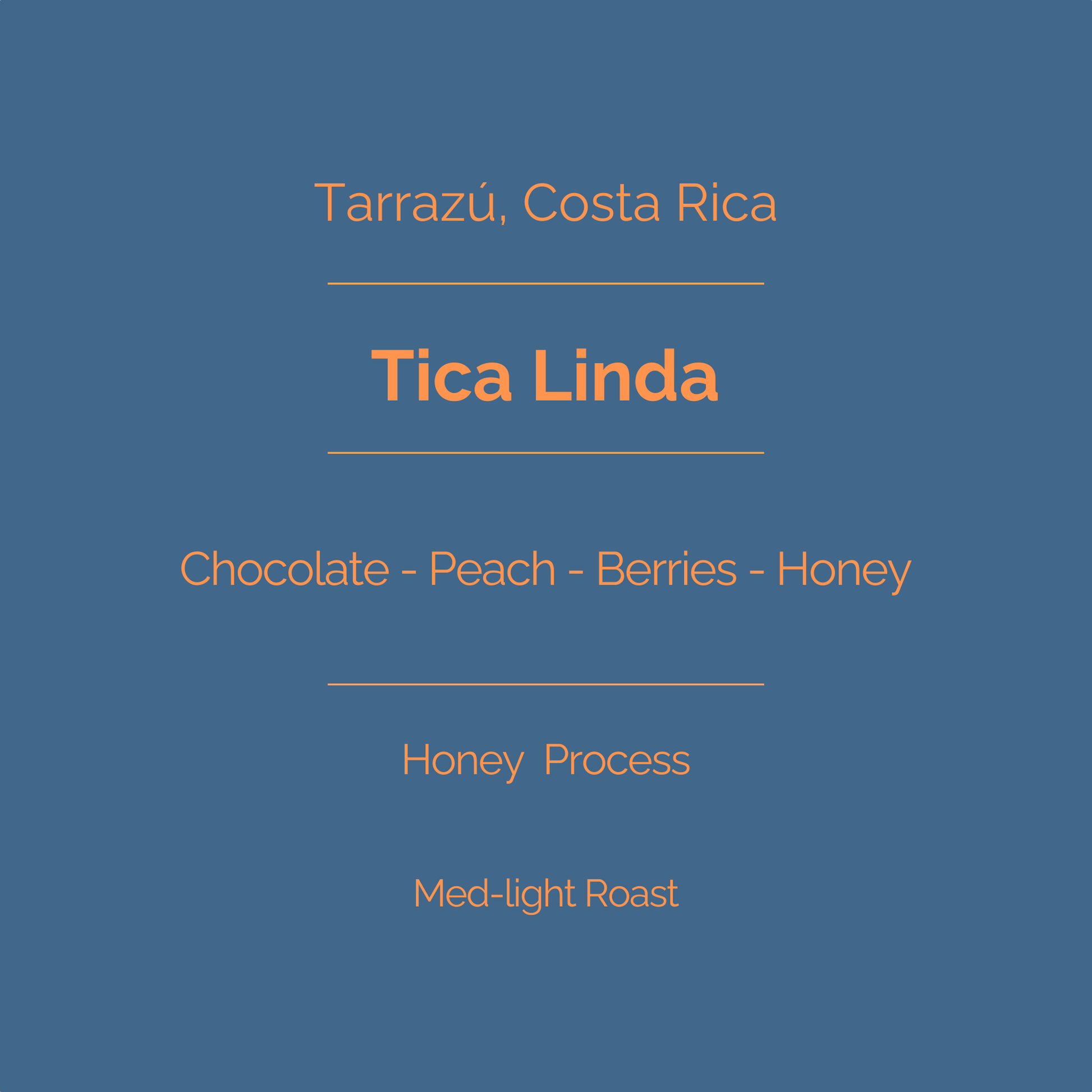 Tica Linda is a women-produced lot from the highlands of Tarrazú, Costa Rica — a region celebrated for its altitude, rich red clay soils, and exceptional coffee quality. Grown at 1,600 meters by smallholder women farmers and processed at Beneficio San Diego, this lot highlights Costa Rica’s long-standing innovation in honey processing. With this method, some of the fruit’s mucilage remains during drying, bringing natural sweetness and a smooth, rounded profile. Expect balanced fruit tones with honey-like sweetness and a smooth finish.